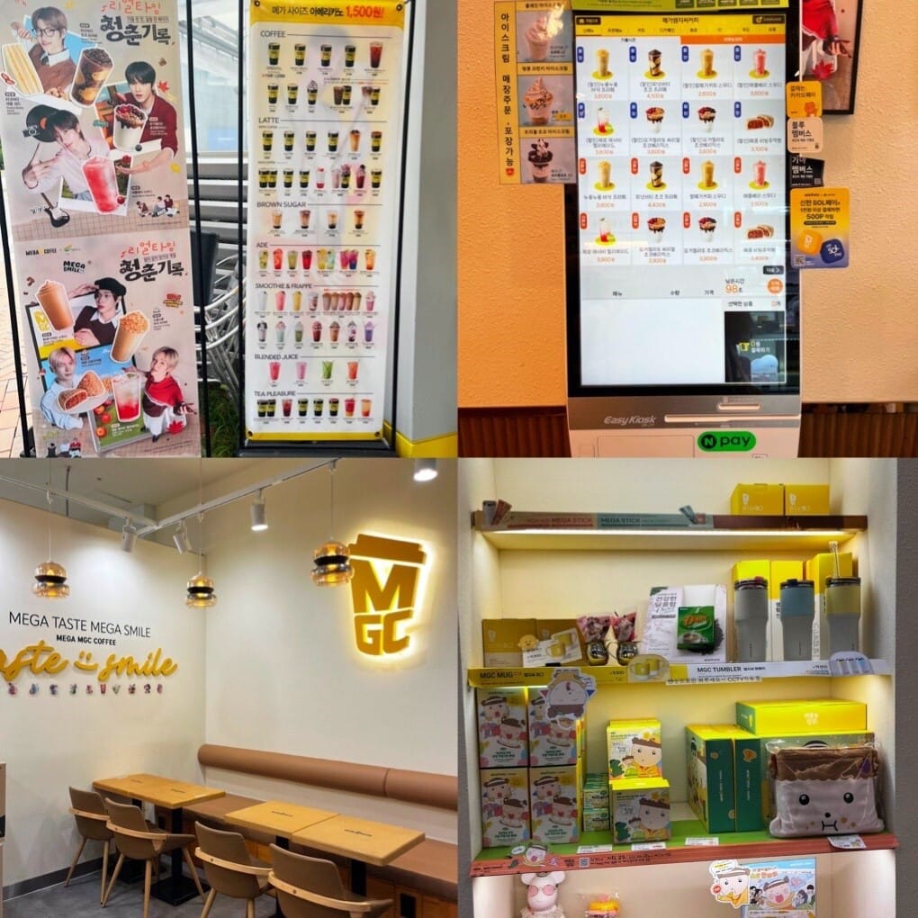 In South Korea, coffee isn’t just a drink , it’s a lifestyle. While big-name franchises like Starbucks or The Coffee Bean are everywhere, there’s another side to the Korean coffee scene: low-cost brands like MegaMGC, Paik’s Coffee, Compose Coffee, and Monster Coffee. These chains offer incredible value, with a $1 Americano (venti size) and $3 smoothies or frappuccinos. Among the budget coffee chains, today I’d like to introduce MegaMGC Coffee.
